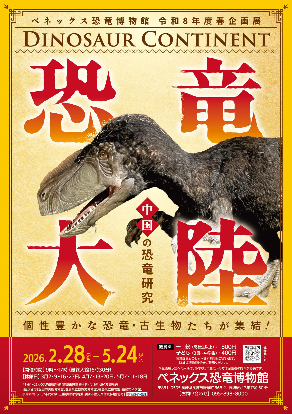 世界でも有数の恐竜化石の産地として知られる地域・中国。 その広大な大地から見つかった恐竜や古生物たちを、全身骨格標本や復元[…]