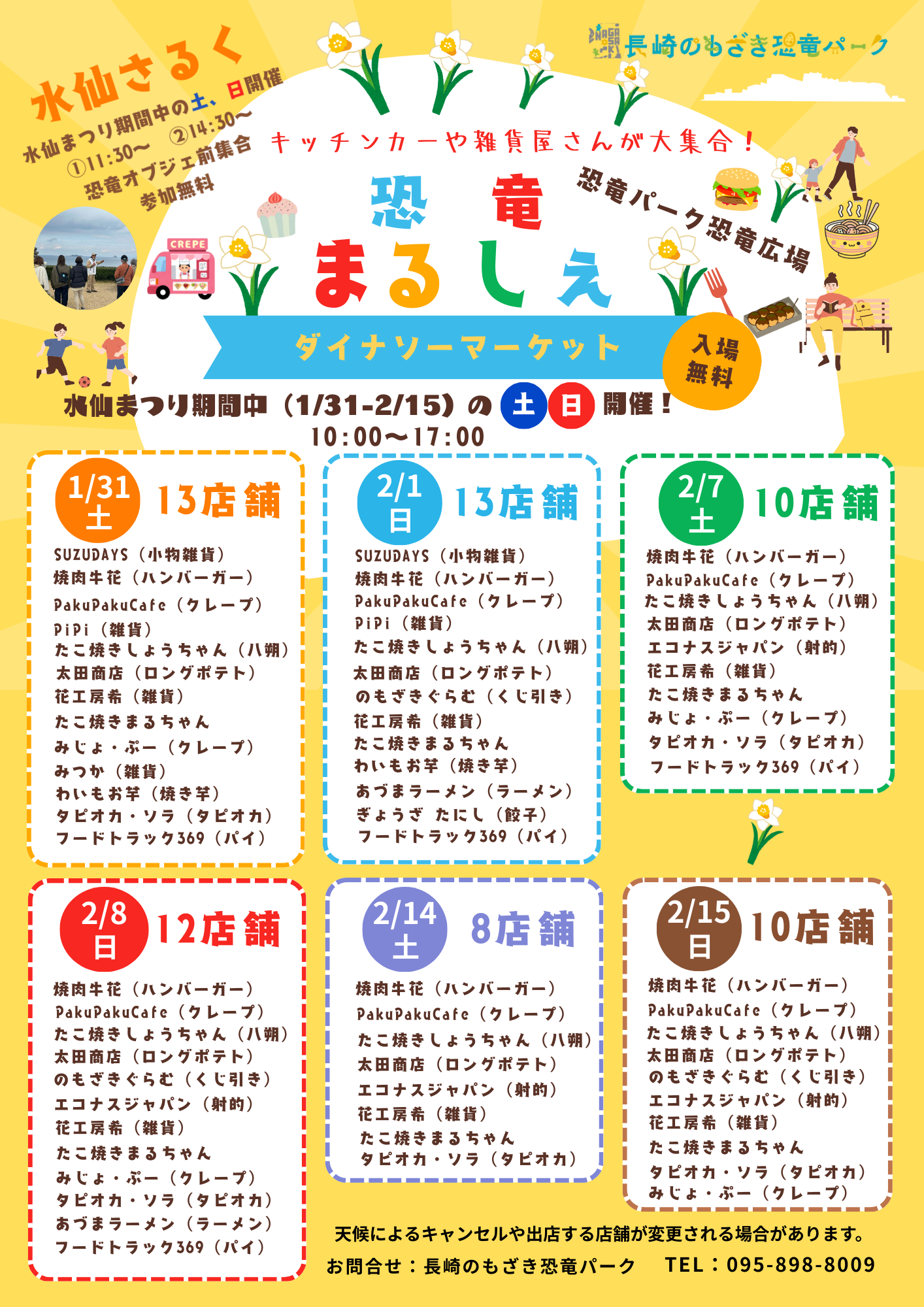 イベントのお知らせです。 長崎のもざき恐竜パークにて、 水仙祭り期間中にキッチンカーや雑貨屋さんが大集合する【恐竜まるしぇ】を開催します! 詳細は[…]
