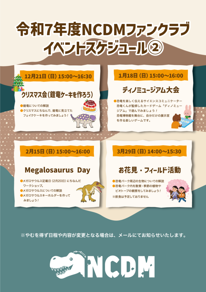 【令和7年度NCDMファンクラブ限定イベントスケジュール】のお知らせ