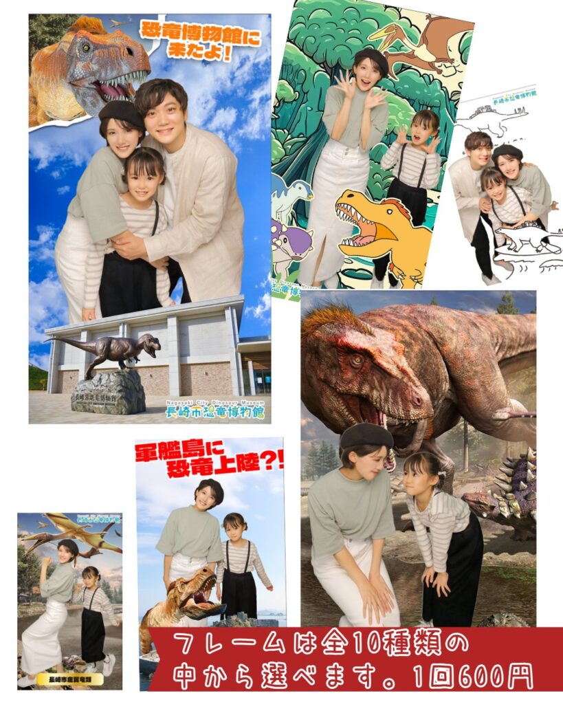リアルな恐竜やイラスト風など、選べるフレームは全10種類。旅の記念や思い出づくりにぜひご利用ください!
