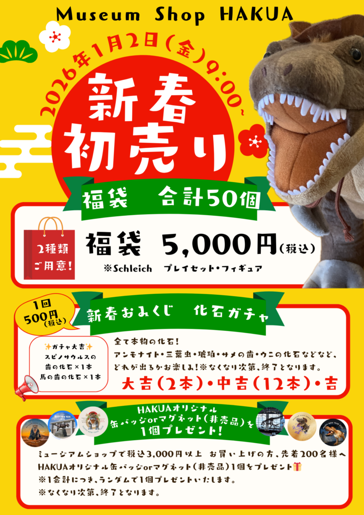 新年のスタートに、恐竜博物館ミュージアムショップ「HAKUA」でお得で楽しいお買い物をぜひお楽しみください!