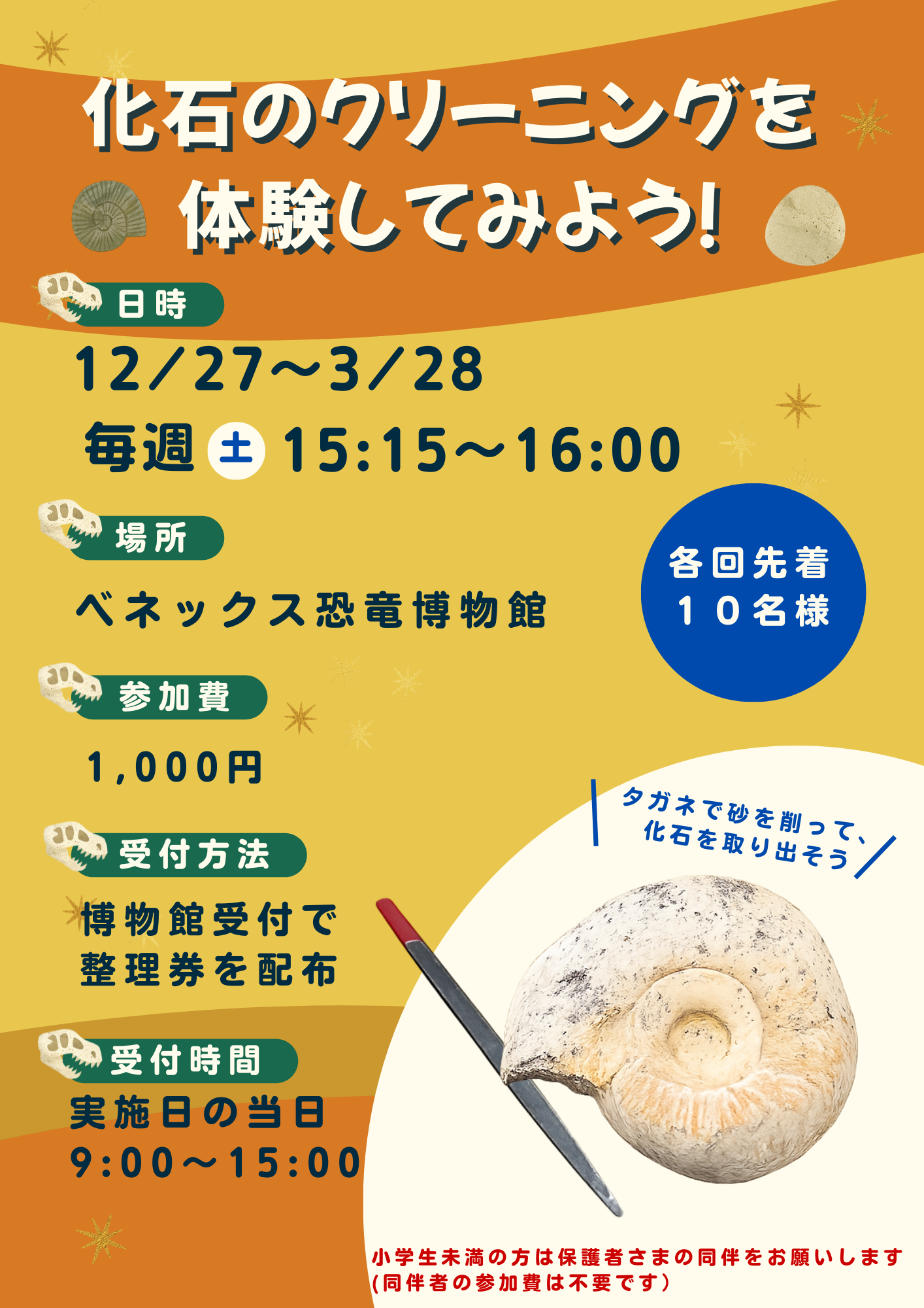 ワークショップ「恐竜・古生物マグネットをつくろう」 開催日: 2025年12月24日(水) ~ 2026年01月31日(土) ワークショップ「化石のクリーニングを体験してみよう!」 開催日: 2025年12月27日(土) ~ 2026年03月28日(土) 関連リンク